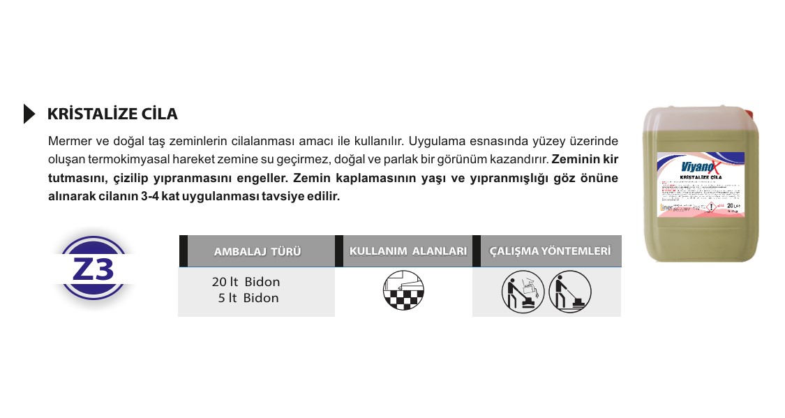 Zeminin kir tutmasını, çizilip yıpranmasını engeller. Zemin kaplamasının yaşı ve yıpranmışlığı göz önüne alınarak cilanın 3 – 4 kat uygulanması tavsiye edilir.